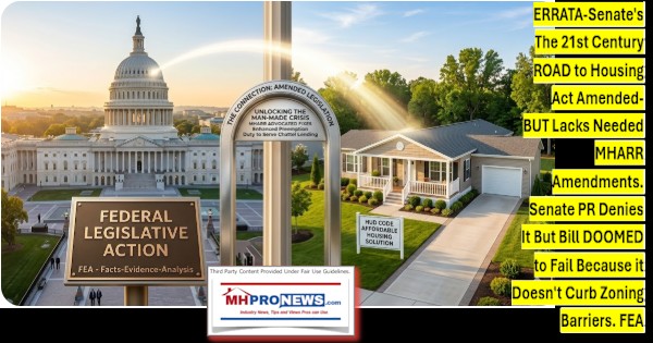 ERRATA-Senate’s The 21st Century ROAD to Housing Act Amended-BUT Lacks Needed MHARR Amendments. Senate PR Denies It But Bill DOOMED to Fail Because it Doesn’t Curb Zoning Barriers. FEA