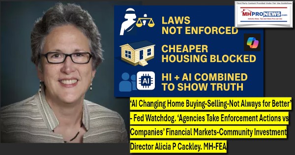 ‘AI Changing Home Buying-Selling-Not Always for Better’-Fed Watchdog. ‘Agencies Take Enforcement Actions vs Companies’ Financial Markets-Community Investment Director Alicia P Cackley. MH-FEA