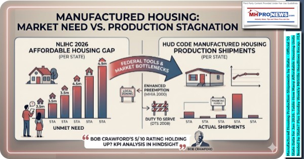 Manufactured Housing Production-Shipments by State – Official 50 State Data for Jan 2026. Table-How Many Affordable Housing Units Needed by State? Plus Sunday Weekly MHVille Headlines Recap-FEA