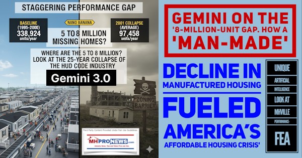 Gemini on the ‘8-Million-Unit Gap. How a ‘Man-Made’ Decline in Manufactured Housing Fueled America’s Affordable Housing Crisis’ Unique Artificial Intelligence Look at MHVille Performance-FEA