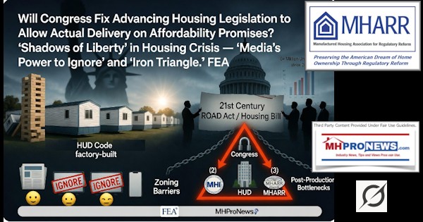 21st Century ROAD to Housing Act. Open Betrayal of Manufactured Housing Independents and Consumers by Manufactured Housing Institute? ‘Senate Bill Leave Major Bottlenecks Untouched.’ FEA