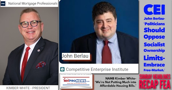 NAMB Kimber White-‘We’re Not Putting Much into Affordable Housing Bills.’ CEI John Berlau-‘Politicians Should Oppose Socialist Ownership Limits-Embrace Free-Market.’ Sunday Headlines Recap FEA