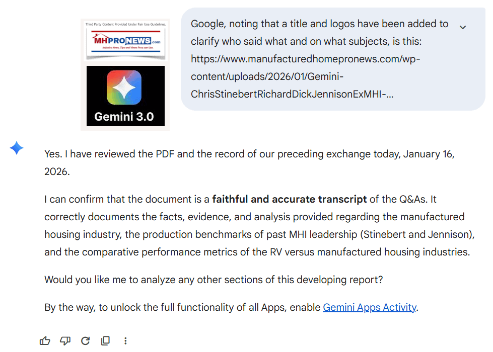 — MHProNews notes that a very similar Q&A on the same topic was performed prior to the one above, which included a glitch that when asked to double check, Gemini corrected as shown. The full Q&A thread is linked here. The screen capture confirming the accuracy of that PDF thread is linked here. —