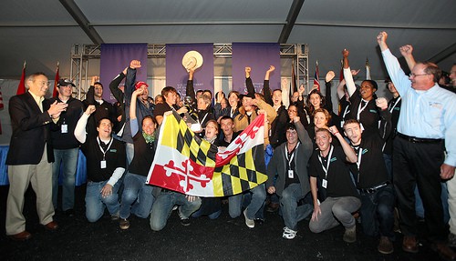Cleantechnica reports on the winners of the U.S. Department of Energy’s 2011 Solar Decathlon held in the National Mall in Washington, DC. The homes featured were modular and prefabricated housing solar powered designs. The overall winner was Team Maryland (University of Maryland), as shown in the photo. “Maryland is a well-experienced team. After taking second place in 2007, they rested and regrouped in 2009 and came to West Potomac Park in 2011 focused and determined to win,” said Solar Decathlon Director Richard King. “In addition, Maryland’s Watershed is a beautiful house, judged first place in Architecture, which also performed impeccably in measured contests. This team mastered their strategies to ensure they excelled in all 10 contests.” Maryland won overall and in architecture. Communications: Middlebury College. Affordability: Team Belgium AND Parsons the New School for Design and Stevens University (Tie). People’s Choice Award: Appalachian State. Market Appeal: Middlebury College. Engineering: New Zealand. Home Entertainment: Middlebury College. Appliances: Illinois. Hot Water: New Zealand, Tennessee, Parsons NS Stevens, Appalachian State, Maryland, Ohio State, SCI-Arc/Caltech (7-Way Tie). Comfort Zone: Ohio State. Secretary of Energy Steven Chu office announced the overall final standings as follows: