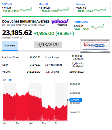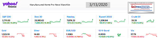 Programing note. Be looking for a special report on MHProNews about the still developing coronavirus issue and how it impacts manufactured housing that is in process. Teaser. There is evidence from a range of sources that one of the greatest transfers of wealth could be occurring right before the nation’s and the world’s eyes. MHProNews has been monitoring these developments through a skeptical evidence-and-historically focused lens.