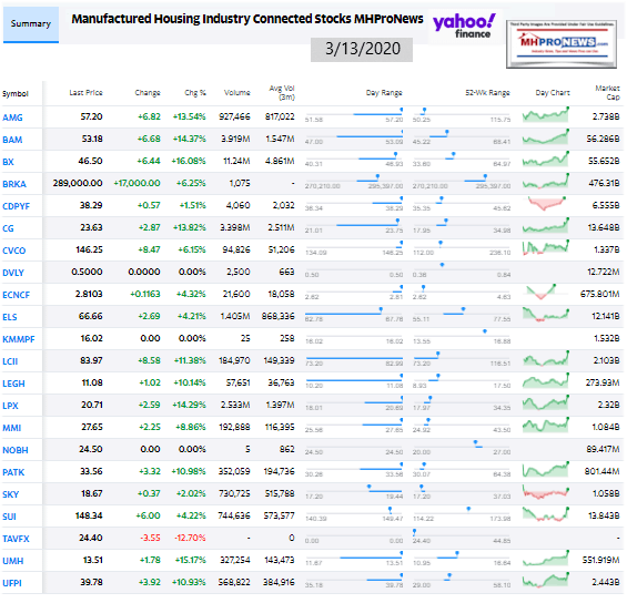 Manufactured Housing Industry Investments Connected Closing Equities Tickers