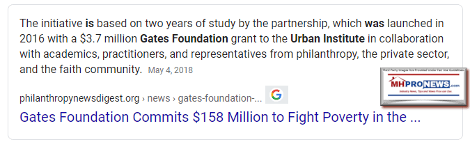 While numerous other data-points could be made, the following one should suffice to make the point. Beyond support and involvement from Warren Buffett and his interests, The Gates Foundation has donated millions to the Urban Institute, per the source shown below.