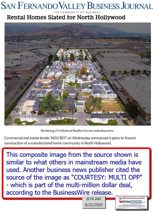 BusinessWire, a Berkshire Hathaway subsidiary that handles press releases, reported on June 17, 2020 about “an approximately $36 million bridge loan for the acquisition and redevelopment of Hollywood Backlot Homes, a 10-acre manufactured home community aimed at fulfilling demand for attainable housing options in the Los Angeles market.”
