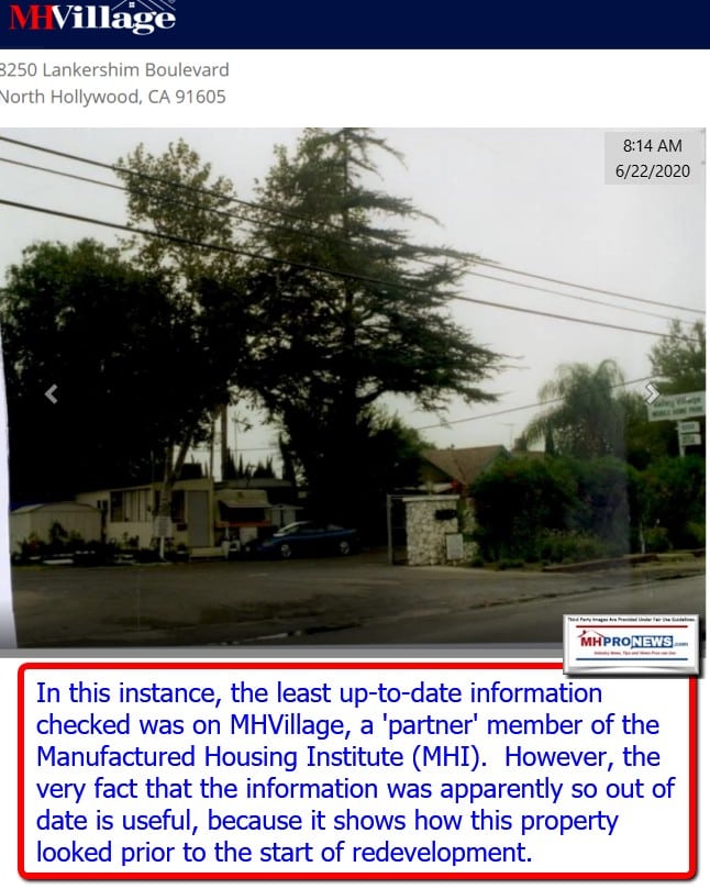 MHVillage provided scant and apparently out-of-date information. Their photos were of the older property configuration, not the newly redeveloped one. That noted, it may prove useful depending on how details for a follow up on this report emerge.