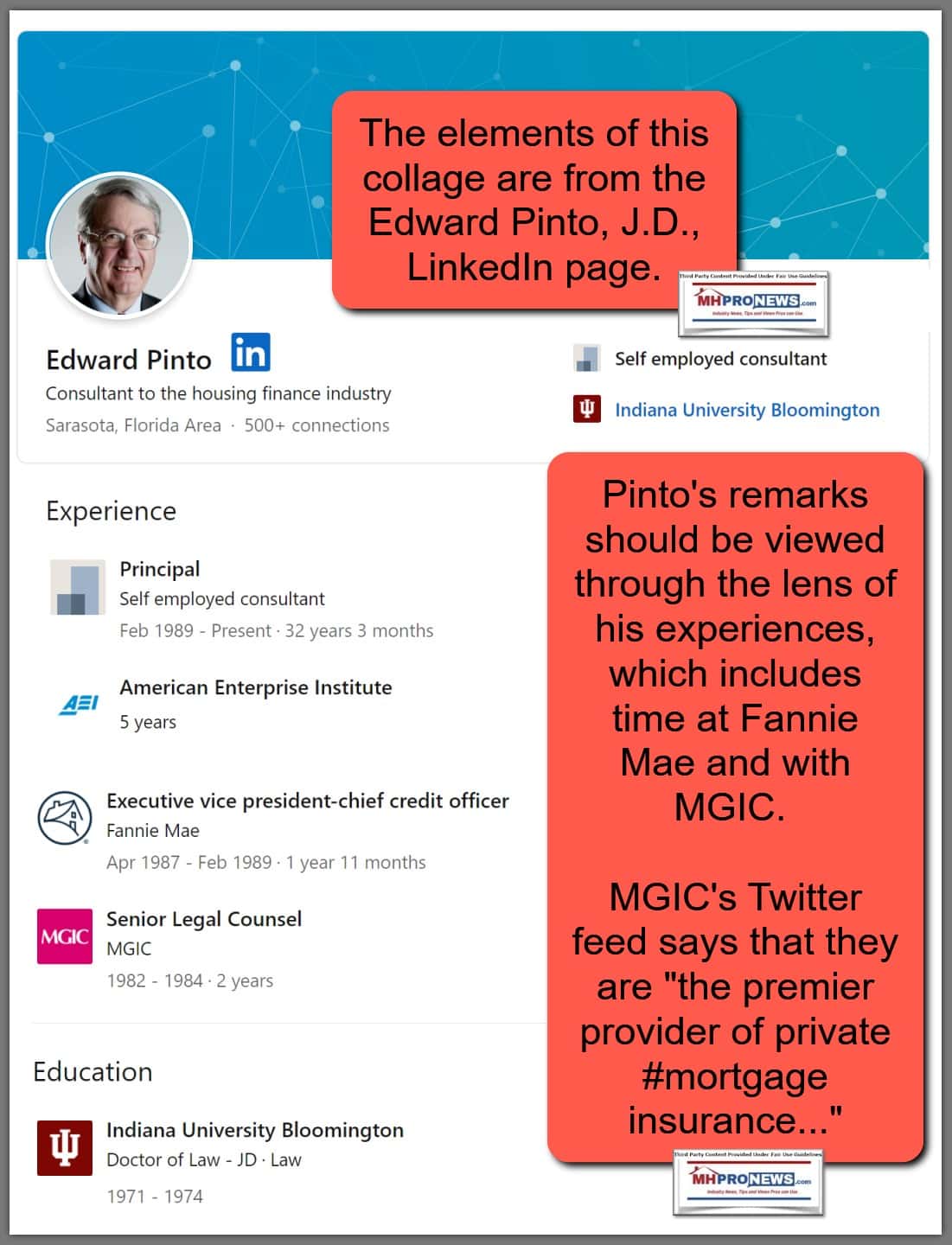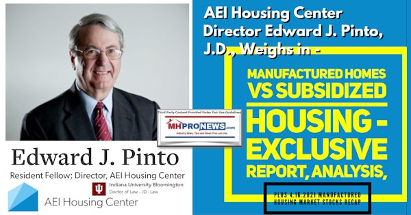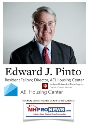 While Peter did not make a direct statement about manufactured homes in the testimony provided to MHProNews by AEI earlier this week, in the light of Pinto’s remarks above, the following pull-quotes may take on a new light.
