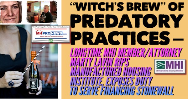 That noted, logically by default, the Manufactured Housing Institute (MHI) has demonstrated that its critics are correct. This is not an incidental matter. It goes to the core of the why behind the criticism or MHI and what Marty Lavin, J.D. has called it’s “big boy” dominating companies.