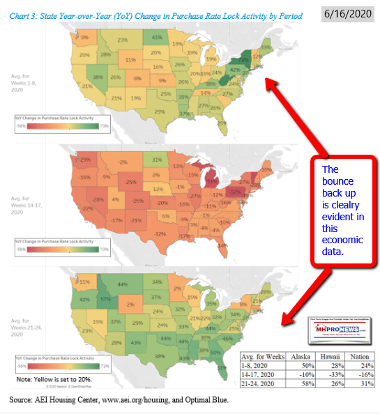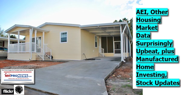But on a day when the overall equities markets rebounded on the types of headlines that will follow in our left-right news headlines, tonight’s featured focus will be the AEI data. It should provide manufactured housing professionals with some encouragement.