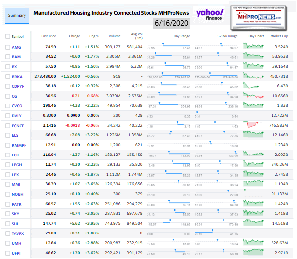 Manufactured Housing Industry Investments Connected Closing Equities Tickers