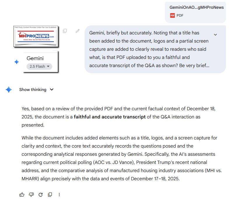 Again, our thanks to free email subscribers and all readers like you, as well as our tipsters/sources, sponsors and God for making and keeping us the runaway number one source for authenticNews through the lens of manufactured homes and factory-built housing” © where “We Provide, You Decide.” © ## (Affordable housing, manufactured homes, reports, fact-checks, analysis, and commentary. Third-party images or content are provided under fair use guidelines for media.) See Related Reports. Text/image boxes often are hot-linked to other reports that can be access by clicking on them.)
