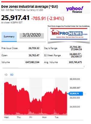 We begin with headlines left-of-center CNN followed by right-of-center Fox Business. We share closing tickers and other related data courtesy of Yahoo Finance, and more. 5 to 10 minutes reading this MHProNews market report every business night could save you 30 minutes to an hour of similar reading or fact-gathering elsewhere.