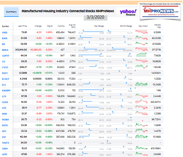 Manufactured Housing Industry Investments Connected Closing Equities Tickers