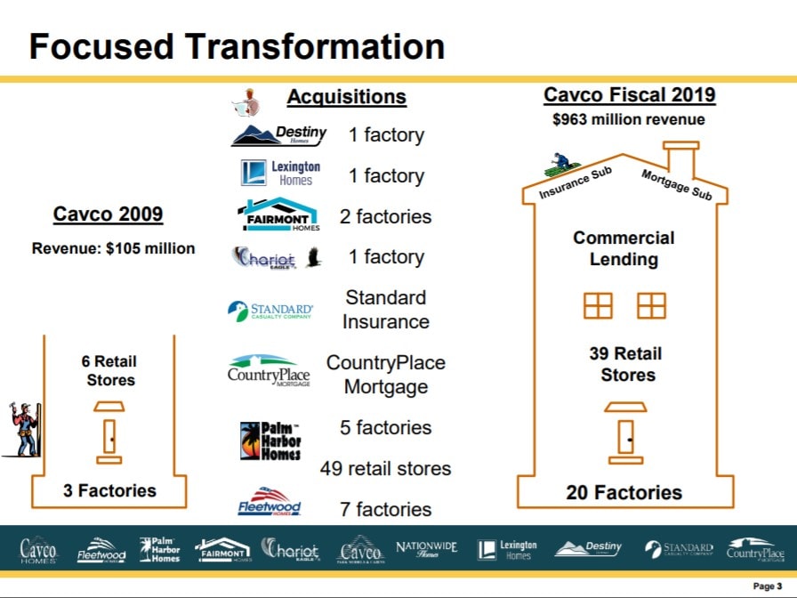 Cavco brags about how they have consolidated much of the industry, in what seems to be an oligopolic relationship between Skyline Champion, and Berkshire Hathaway owned Clayton Homes. If the goal is to consolidate production, why is there any doubt that the same goal exists with retail?