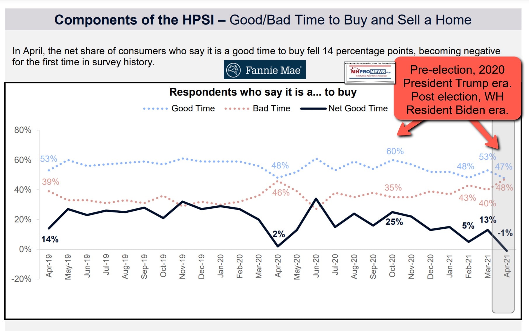 Fannie Mae somberly intones below that their data reveals that: “The percentage of respondents who say it is a good time to buy a home decreased from 53% to 47%, while the percentage who say it is a bad time to buy increased from 40% to 48%. As a result, the net share of those who say it is a good time to buy decreased 14 percentage points month over month.” That ought to be a signal that manufactured housing should surge.