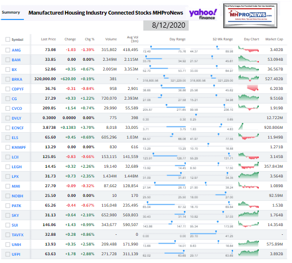 Manufactured Housing Industry Investments Connected Closing Equities Tickers