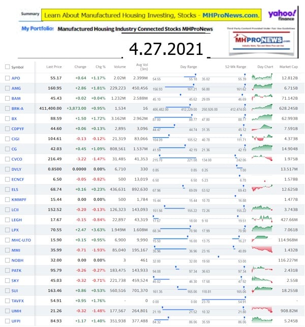 Programming Note: the manufactured home market and stocks report for 4.27.2021 is below. We will resume our normal publishing schedule shortly.