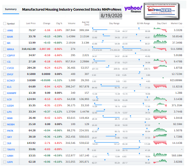 Manufactured Housing Industry Investments Connected Closing Equities Tickers