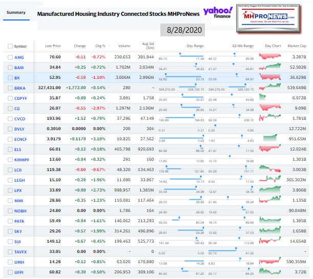 Manufactured Housing Industry Investments Connected Closing Equities Tickers
