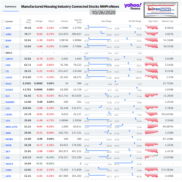 Manufactured Housing Industry Investments Connected Closing Equities Tickers