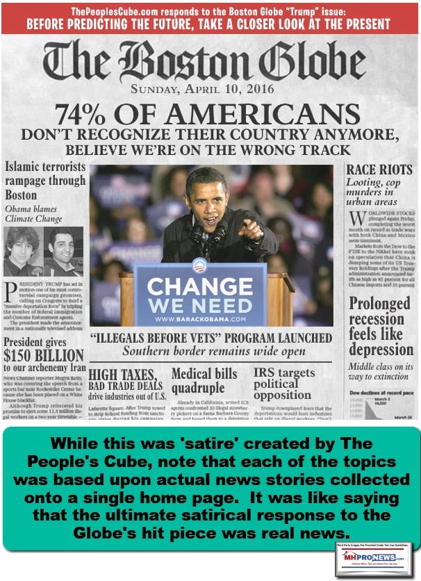 For those who never knew or may have forgotten, the left-of-center Boston Globe ran the following headline in 2016, while the Republican presidential nomination was still hanging in the balance. Just reporting the news – as news – wasn’t enough. Merely doing an editorial that may have started on page one wasn’t enough. Instead, the Boston Globe ran a controversial full page that was made up of literally imaginary ‘reports’ that painted a dark picture of what a Trump Presidency would look like. A crashing stock market and mass deportations were among those topics.