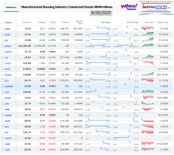 Manufactured Housing Industry Investments Connected Closing Equities Tickers
