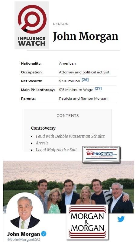 The full extent of Morgan’s influence into the world of affordable manufactured housing is up for discussion. Those seeking a plaintiff’s attorney may want to consider the items in this report and their sources before making a decision.”