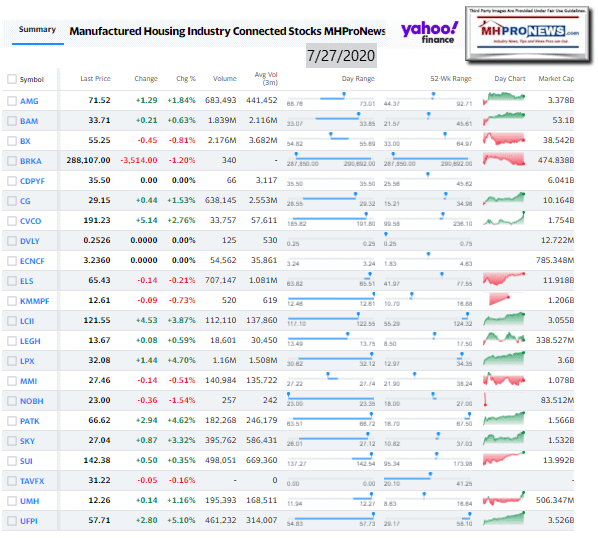 Manufactured Housing Industry Investments Connected Closing Equities Tickers