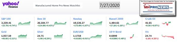 Tonight’s featured focus segment of this evening’s market report is found beyond the left-right headline news bullets and 2 of our 3 market snapshots at the close today. The manufactured housing industry connected stocks are near the end of the report each evening, after the featured focus and the related/recent report links.