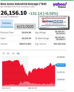 DowJones6.23.2020ManufacturedHomeStockUpdatesBroaderMarketSnapshot Left-of-center CNBC report a surge in sales for conventional housing.