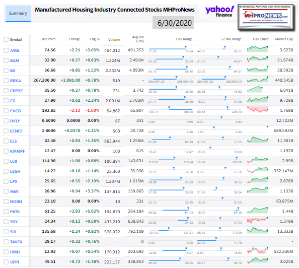 Manufactured Housing Industry Investments Connected Closing Equities Tickers