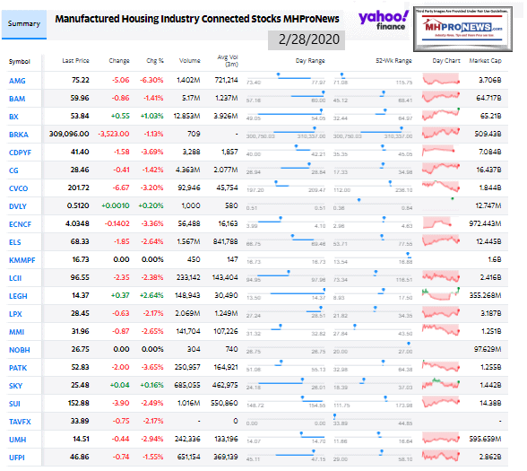 Manufactured Housing Industry Investments Connected Closing Equities Tickers