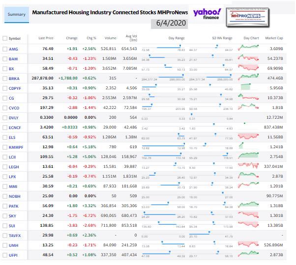 Manufactured Housing Industry Investments Connected Closing Equities Tickers
