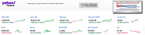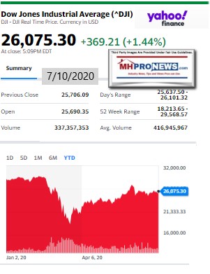 The balance of the featured focus segment of this evening’s report is found beyond the left-right headline news bullets and 2 of our 3 market snapshots at the close today. The manufactured housing industry connected stocks are near the end of the report each evening, after the featured focus and the related/recent report links.