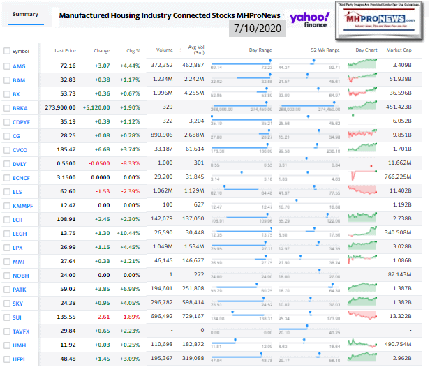 Manufactured Housing Industry Investments Connected Closing Equities Tickers