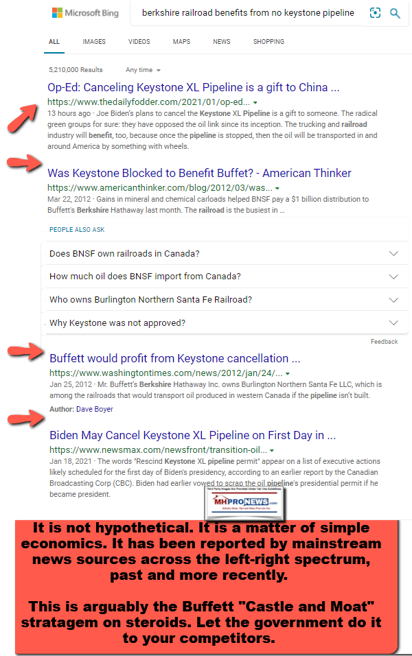 The case can be made that some of these EOs will directly benefit various Berkshire Hathaway brand led by their Chairman Warren Buffett. For example. If the Keystone pipeline is stopped, then oil is transported by truck or rail. That was raised years ago, during the Obama-Biden Administration, during which time – no doubt, coincidentally – Warren Buffett’s grandson was working in the Obama-Biden White House.