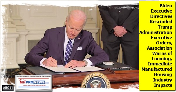 The Biden Administration, in a flurry of executive actions, has dramatically pivoted away from the regulatory reform policies that characterized the administration of former-President Donald Trump. Beyond the new focus of HUD housing policy as set forth in the President’s Executive Memorandum on “Redressing … Discriminatory Housing Practices and Policies” [see, article linked here], a number of other executive actions, detailed below, will have both direct and indirect impacts on the federal regulation of HUD Code manufactured housing.