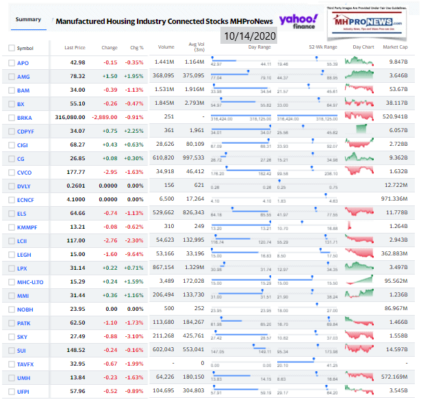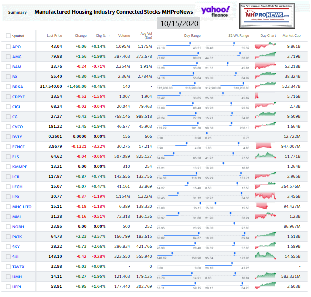 Manufactured Housing Industry Investments Connected Closing Equities Tickers
