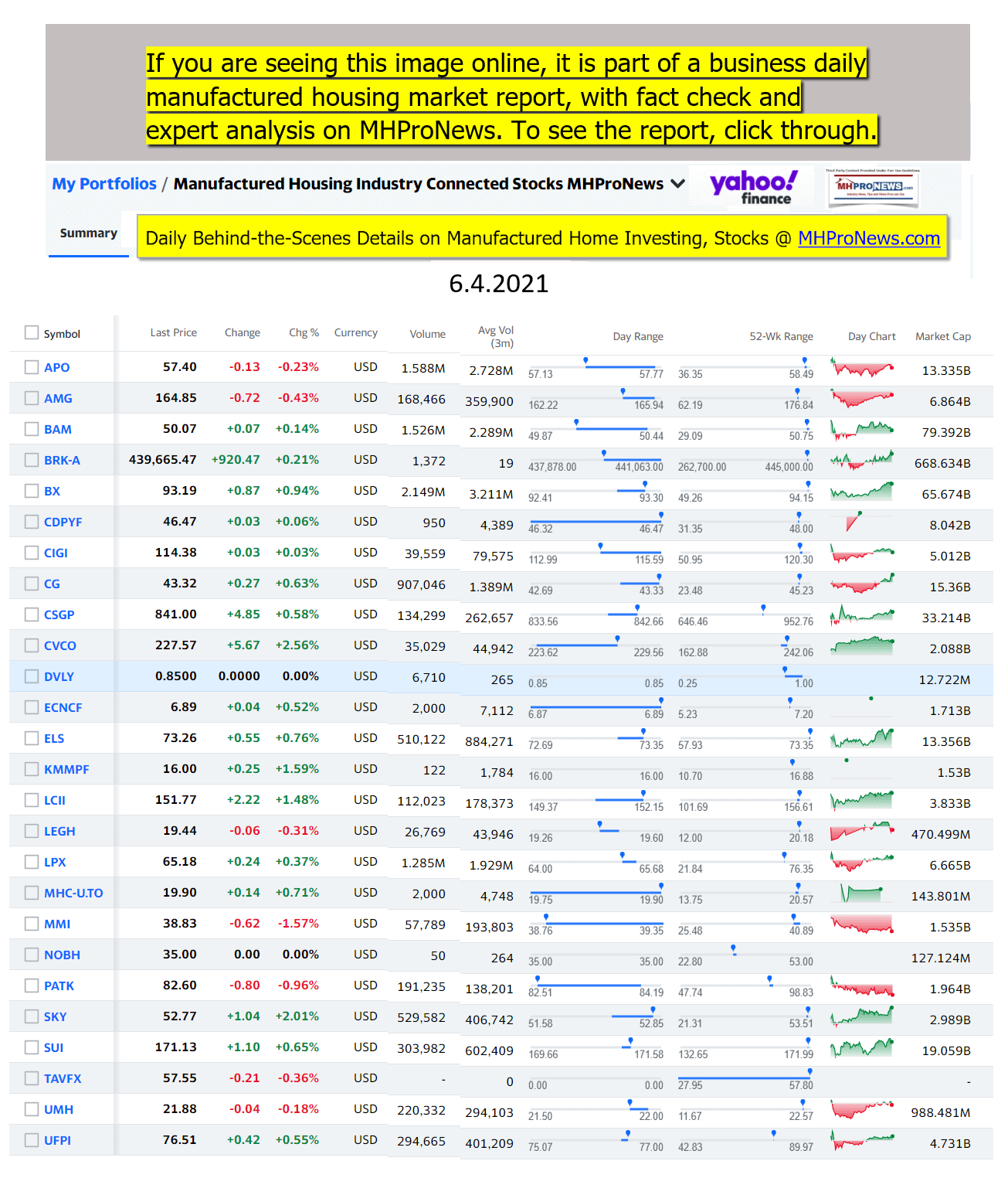 Disclosure. MHProNews holds no positions in the stocks in this report.