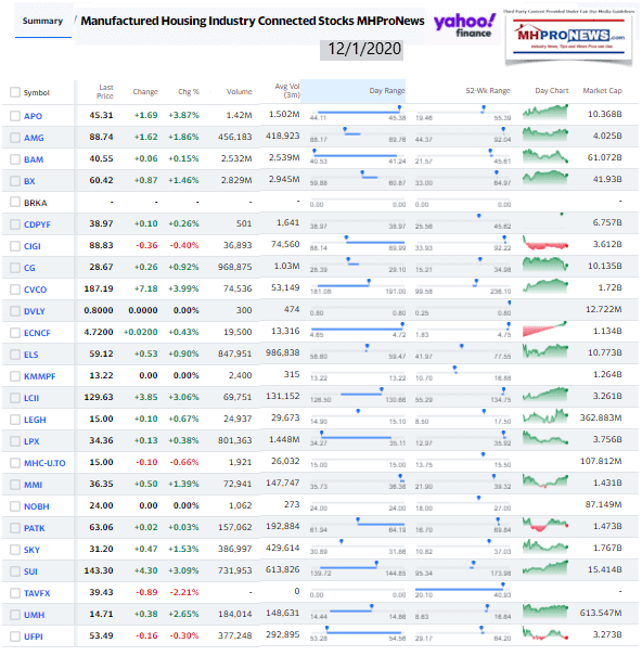 Manufactured Housing Industry Investments Connected Closing Equities Tickers