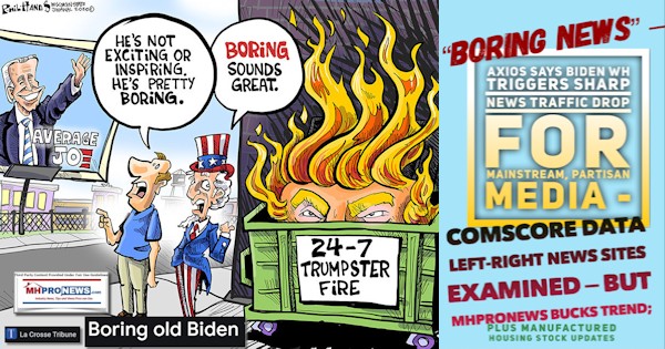 The following report is per left-of-center Axios. MHProNews will quickly note that the news on the border, inflation, rising crime and more are hardly “boring” problems. But left-leaning Axios framed it that way. MHProNews will briefly review the Axios-reported methodology of pigeonholing media bias. That will followed by a stunningly sharp contrast with the trends from mainstream media drop and a significant increase in traffic on MHProNews and MHLivingNews.