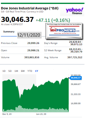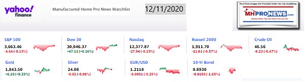 For new readers, the featured focus follows thought provoking quotable quotes, today’s left-right headline recap, and two of the three market snapshots at the closing bell today. The manufactured housing market summary of publicly traded equities at the close today follow the featured focus and the linked recent/related reports.