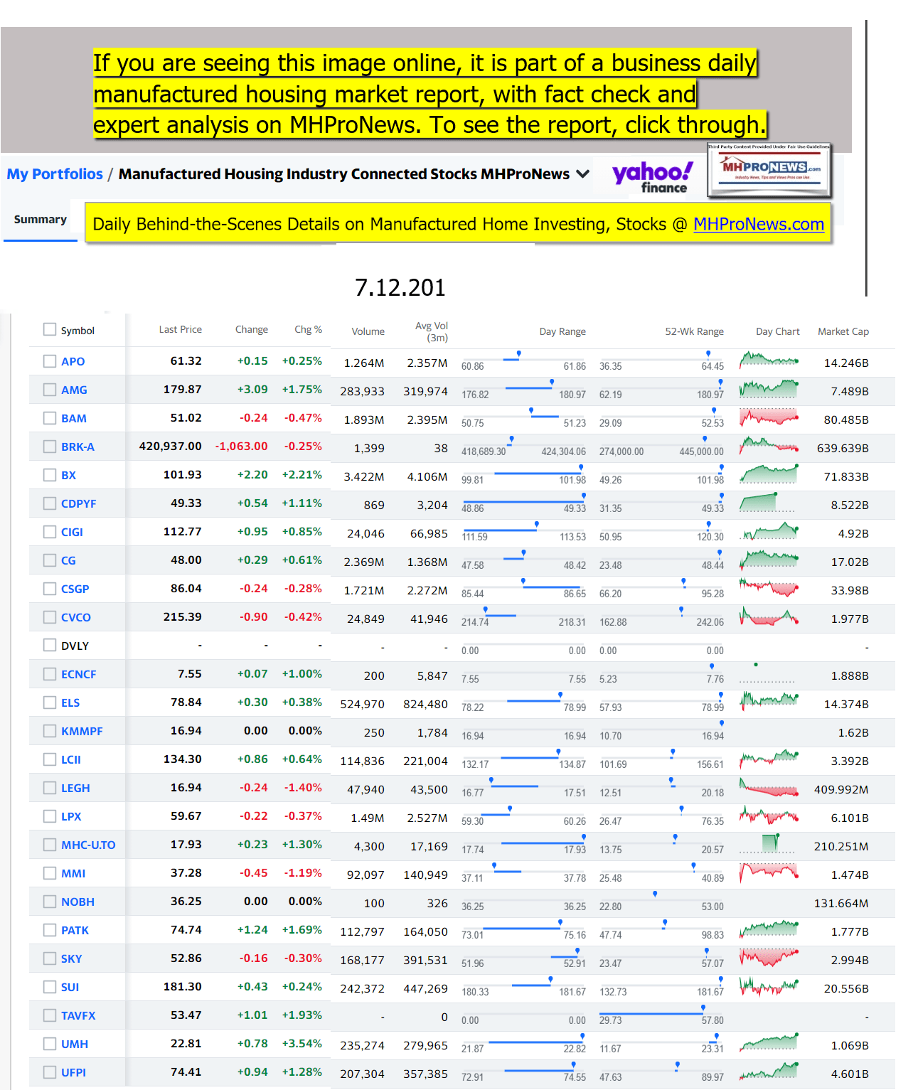 Manufactured Housing Industry Investments Connected Equities Closing Tickers