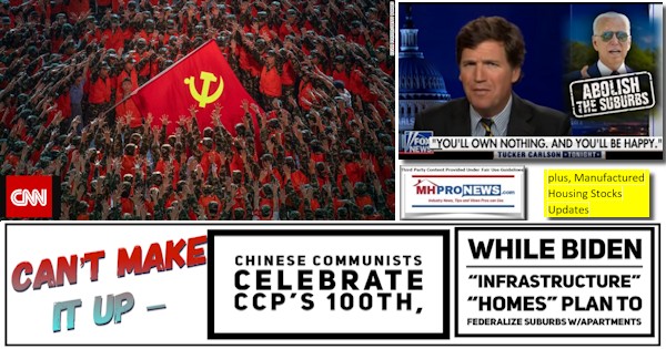 In the U.S.A., the all-too-cozy with Communist China Biden-Harris regime is planning their move in a Democratically controlled Congress to pass by reconciliation a bill that would include the HOMES Act. If successful, the reconciliation process would require only 50 votes in the U.S. Senate, which the Democrats have. Per right-of-center Breitbart, “Democrats plan to federalize local zoning laws within the infrastructure reconciliation package to displace single-family homes with high-rise, low-income apartments to impact the already purple suburbs.