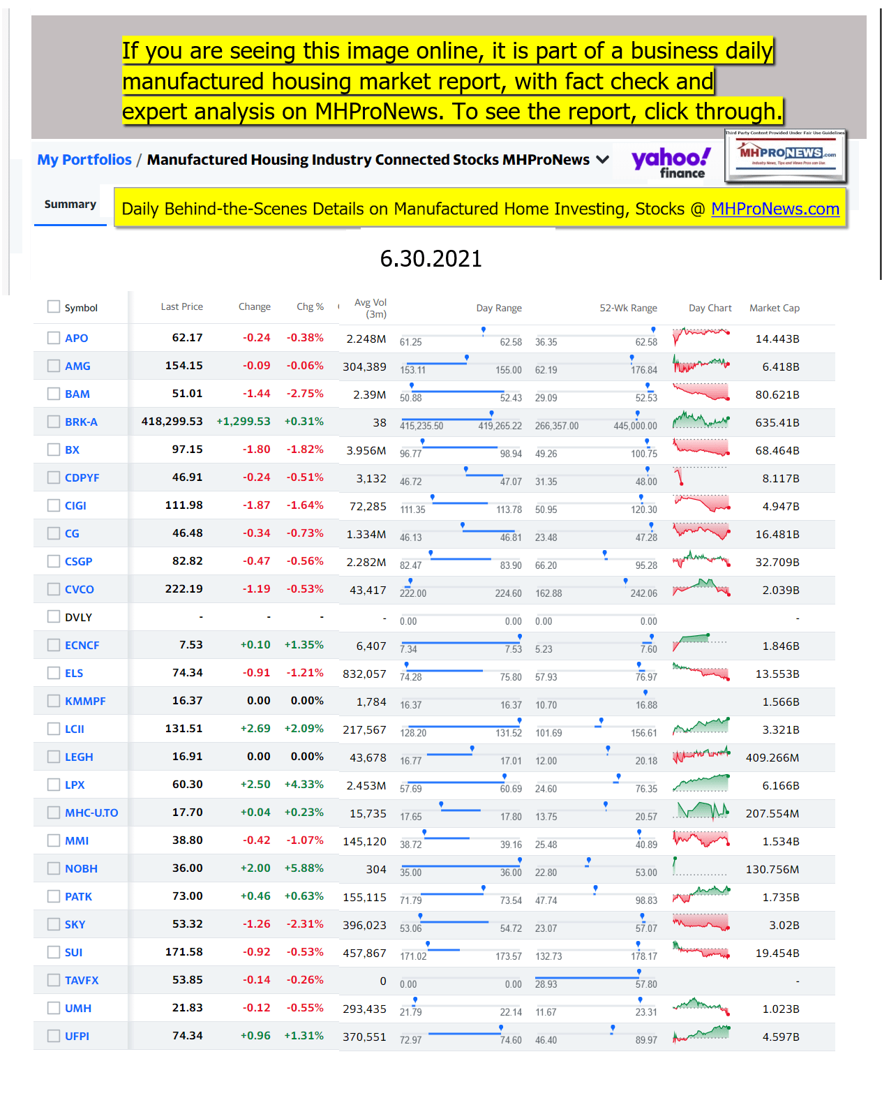 Disclosure. MHProNews holds no positions in the stocks in this report.