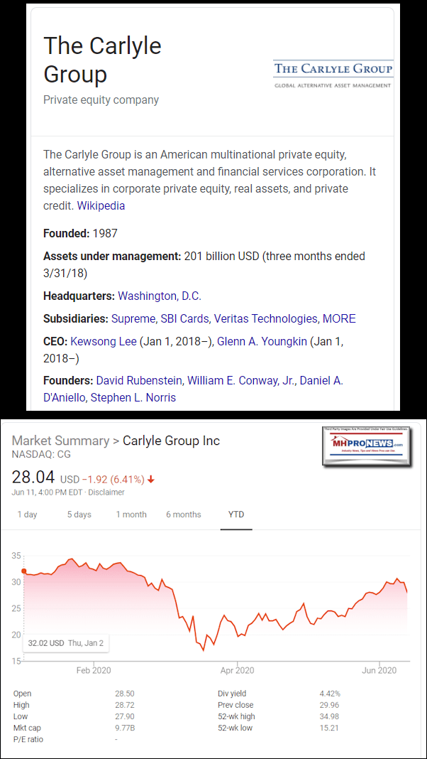 The Carlyle Group (NASDAQ:CG) is a well-known private equity firm. They have been working steadily for several years to increase their footprint in manufactured home communities, often in larger properties.