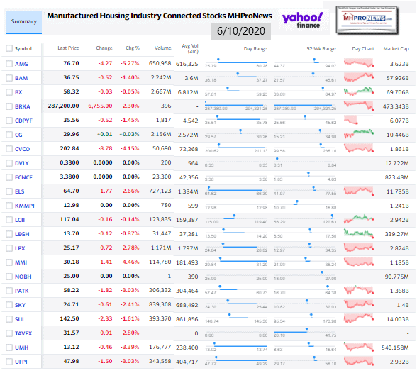 Manufactured Housing Industry Investments Connected Closing Equities Tickers